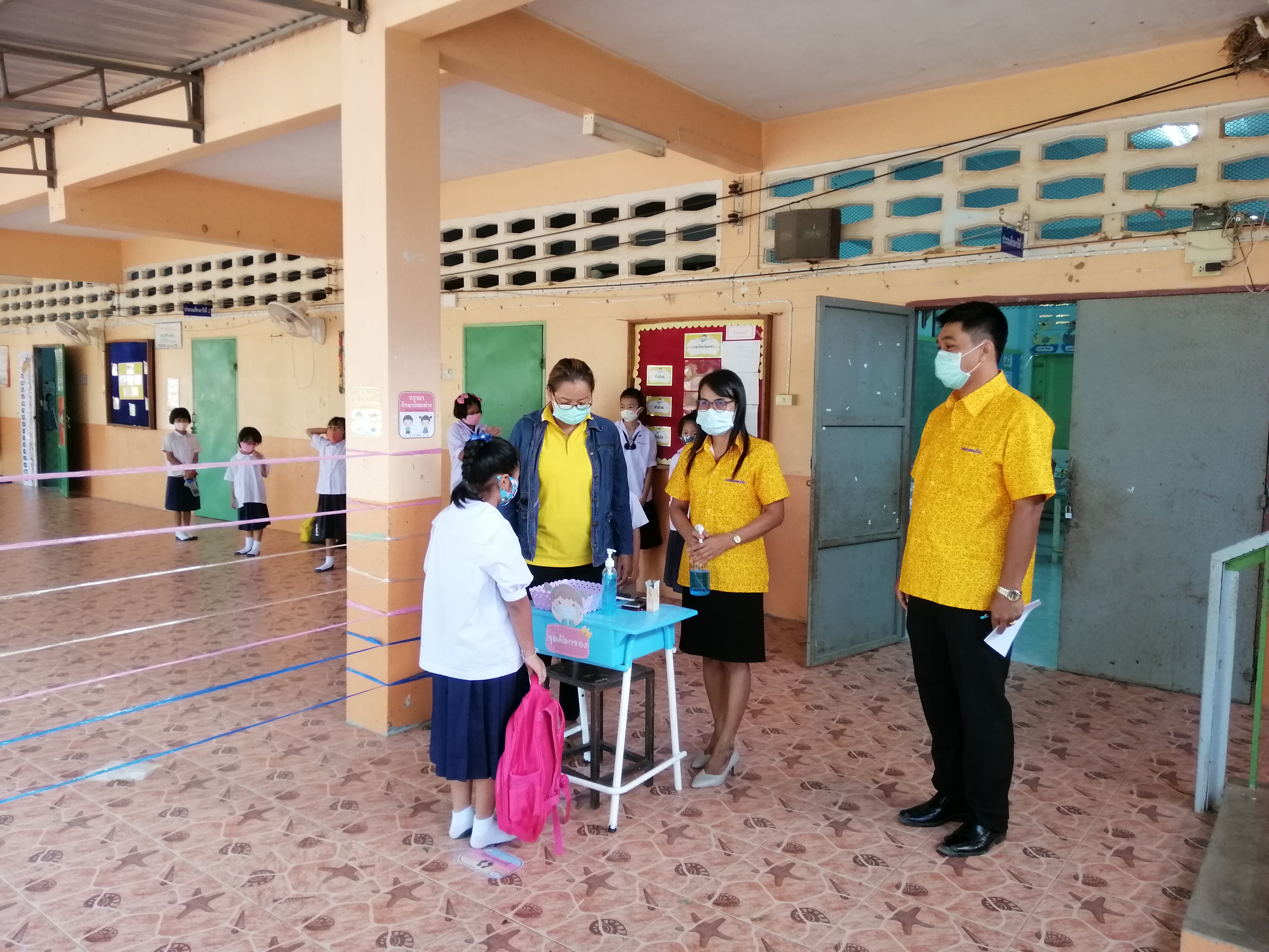 ใส่แมส วัดไข้ ล้างมือด้วยแอลกอฮอก่อนเข้าเรียน ขอขอบคุณอสม.บ้านคลองน้ำโจน มีนางเตือนตา คำรักษ์ นางสาวขวัญฤทัย ขำสนวน และนางบุญยืน มั่นคง จิตอาสามาทำหน้าที่บริการด้านการป้องกันและวีธีการปฏิบัติตนเอง ณโรงเรียนบ้านคลองน้ำโจน