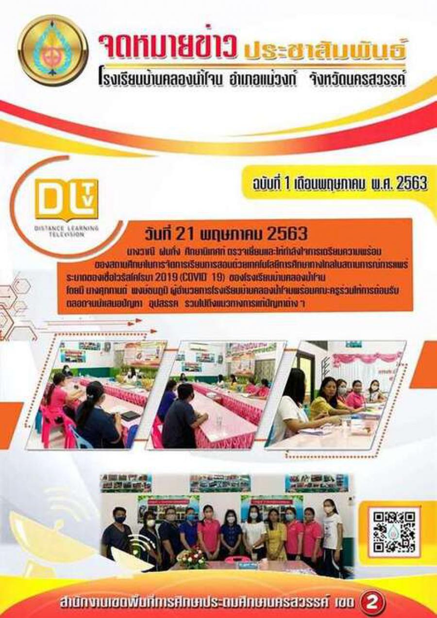 เมื่อวันที่ 21 พฤษภาคม 2563 นางวาณี ฝนทั่ง ศึกษานิเทศน์ ตรวจเยี่ยมและให้กำลังใจการเตรียมความพร้อมของสถานศึกษาในการจัดการเรียนการสอนด้วยเทคโนโลยีการศึกษาทางไกลในสถานการณ์การแพร่ระบาดของเชื้อไวรัสโคโรน่า 2019(COVID-19)ของโรงเรียนบ้านคลองน้ำโจนโดยมีนางศุภกานต์ พงษ์ธนภูมิ ผู้อำนวยการโรงเรียนบ้านคลองน้ำโจนพร้อมด้วยคณะครูร่วมให้การต้อนรับตลอดจนนำเสนอปัญหา อุปสรรครวมไปถึงแนวทางการแก้ปัญหาต่างๆ) S:0