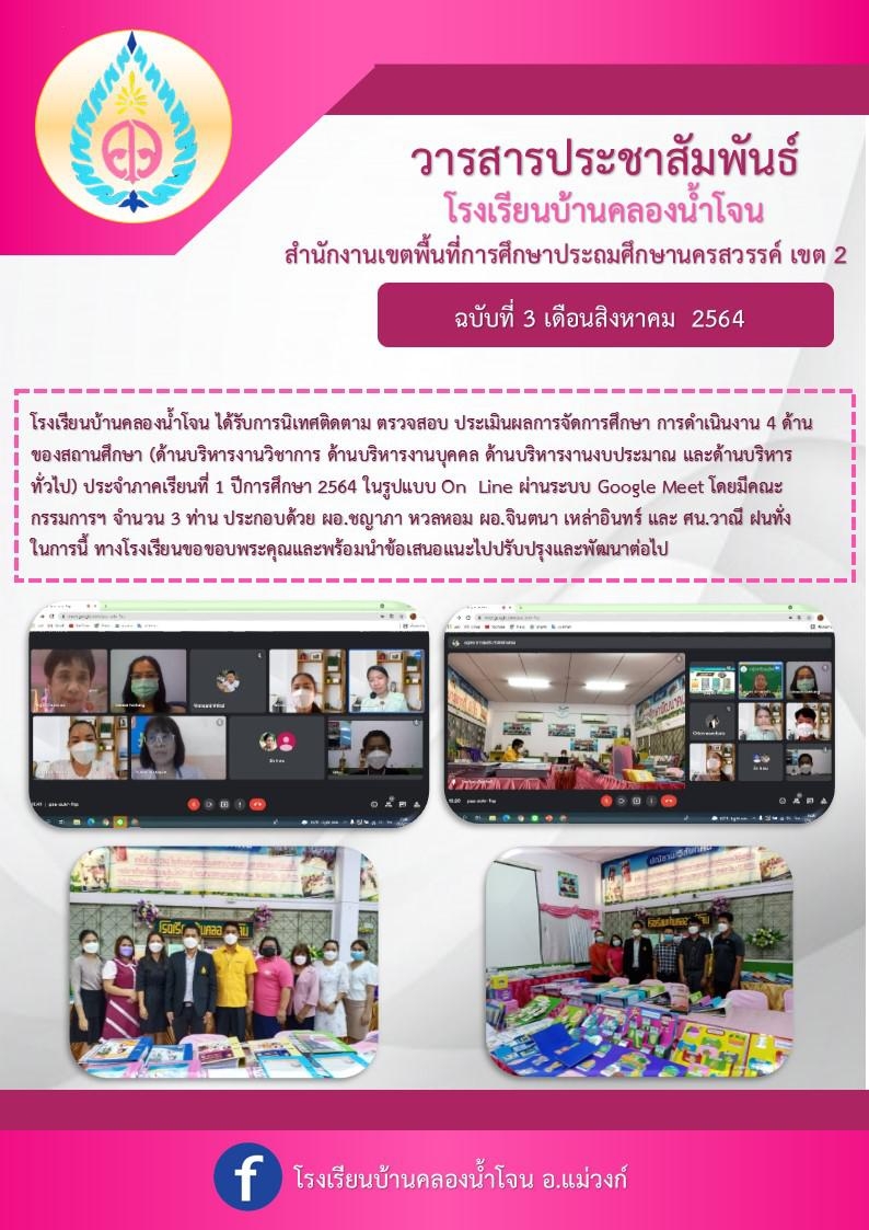 เมื่อวันอังคารที่17สิงหาคม2564โรงเรียนบ้านคลองน้ำโจนได้รับการติดตามนิเทศประเมินผลกสรจัดการศึกษาการดำเนินงาน4ด้านของสถานศึกษาภาคเรียนที่1ปีการศึกษา2564จากสำนักงานเขตพื้นที่การศึกษาประถมศึกษานครสวรรค์
